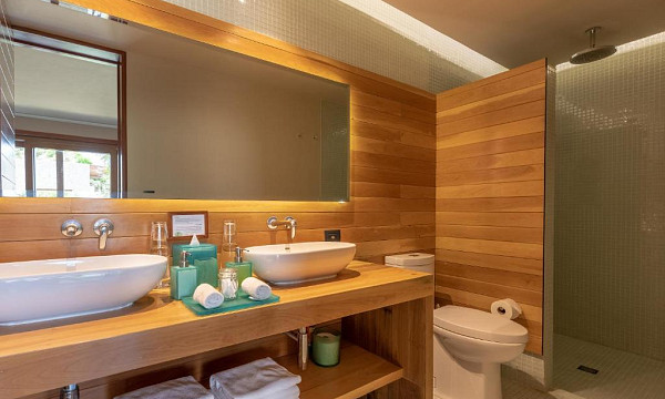 Dvoposteljna soba s pogledom na gozd (25 m2): zakonska postelja, klimatska naprava, mini bar, aparat za kavo, sef in kopalnica, balkon ali terasa.