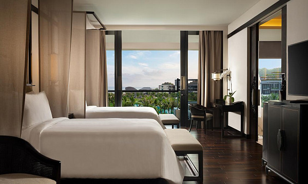 Soba Grand Deluxe Lagoon (pribl. 80 m2): dnevno-spalni prostor z zakonsko posteljo, klima, kopalnica (prha, kad, WC, sušilec za lase, kopalni plašči), TV, telefon, sef, WiFi, mini bar, aparat za pripravo kave in čaja, balkon s pogledom na morje.