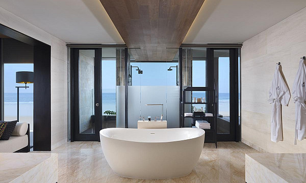 Junior Suita Cliff Lagoon z bazenom (pribl. 100 m2): dnevno-spalni prostor z zakonsko posteljo, klima, kopalnica (prha, kad, WC, sušilec za lase, kopalni plašči), TV, telefon, sef, WiFi, mini bar, aparat za pripravo kave in čaja, terasa z zasebnim bazenom in pogledom na morje.