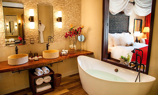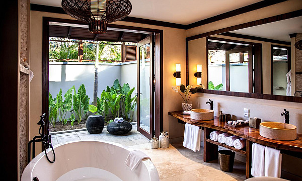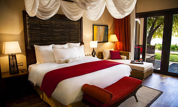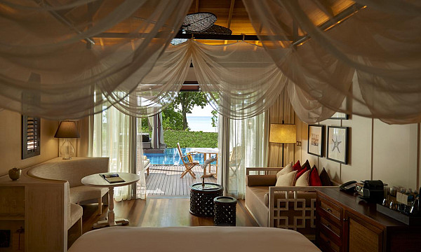 Vila na plaži z bazenom (pribl. 150 m2): dnevno-spalni prostor z zakonsko posteljo, klima, stropni ventilator, kopalnica (prha, kad, WC, sušilec za lase, kopalni plašči, copati), zunanja prha, TV, radio, telefon, sef, WiFi, mini bar, grelnik za vodo, aparat za pripravo kave in čaja, terasa z bazenom in omejenim pogledom na morje.