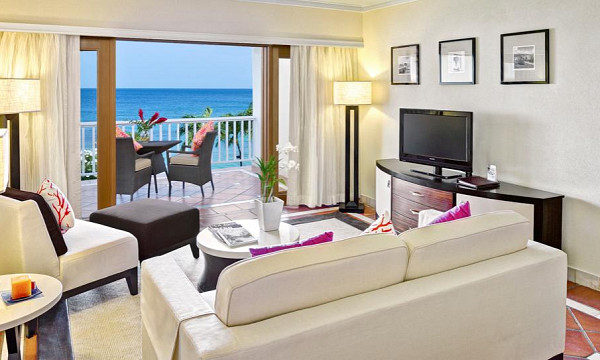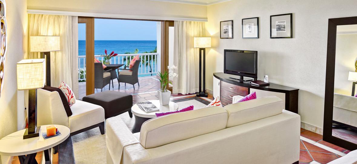 Ocean View One Bedroom suite: ločen dnevni prostor, spalnica z balkonom, zasebni jacuzzi ali bazen, pogled na morje.
