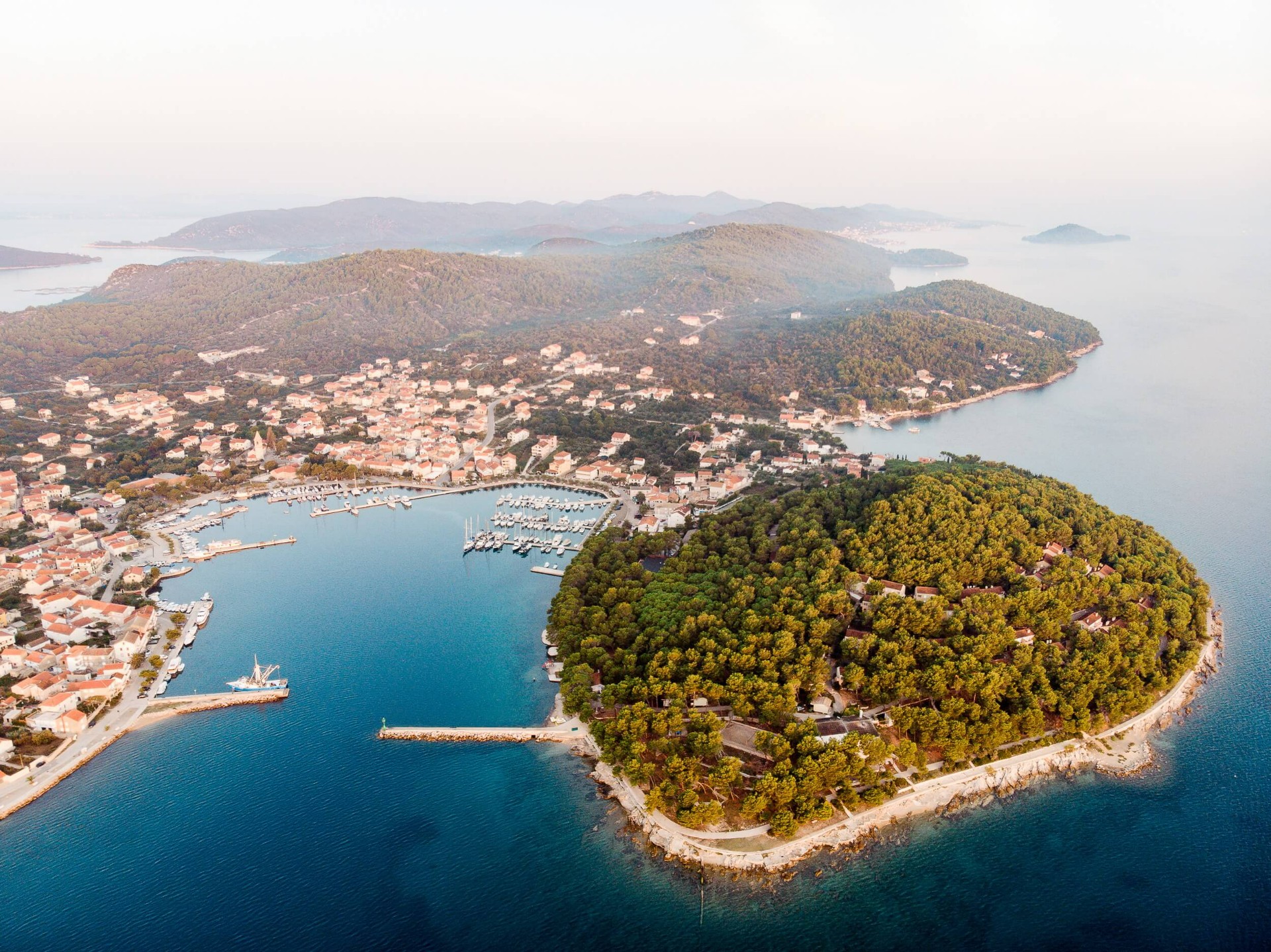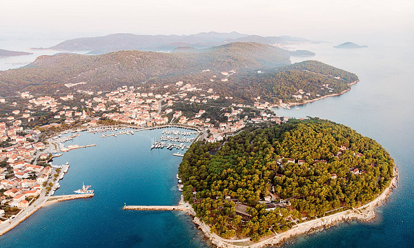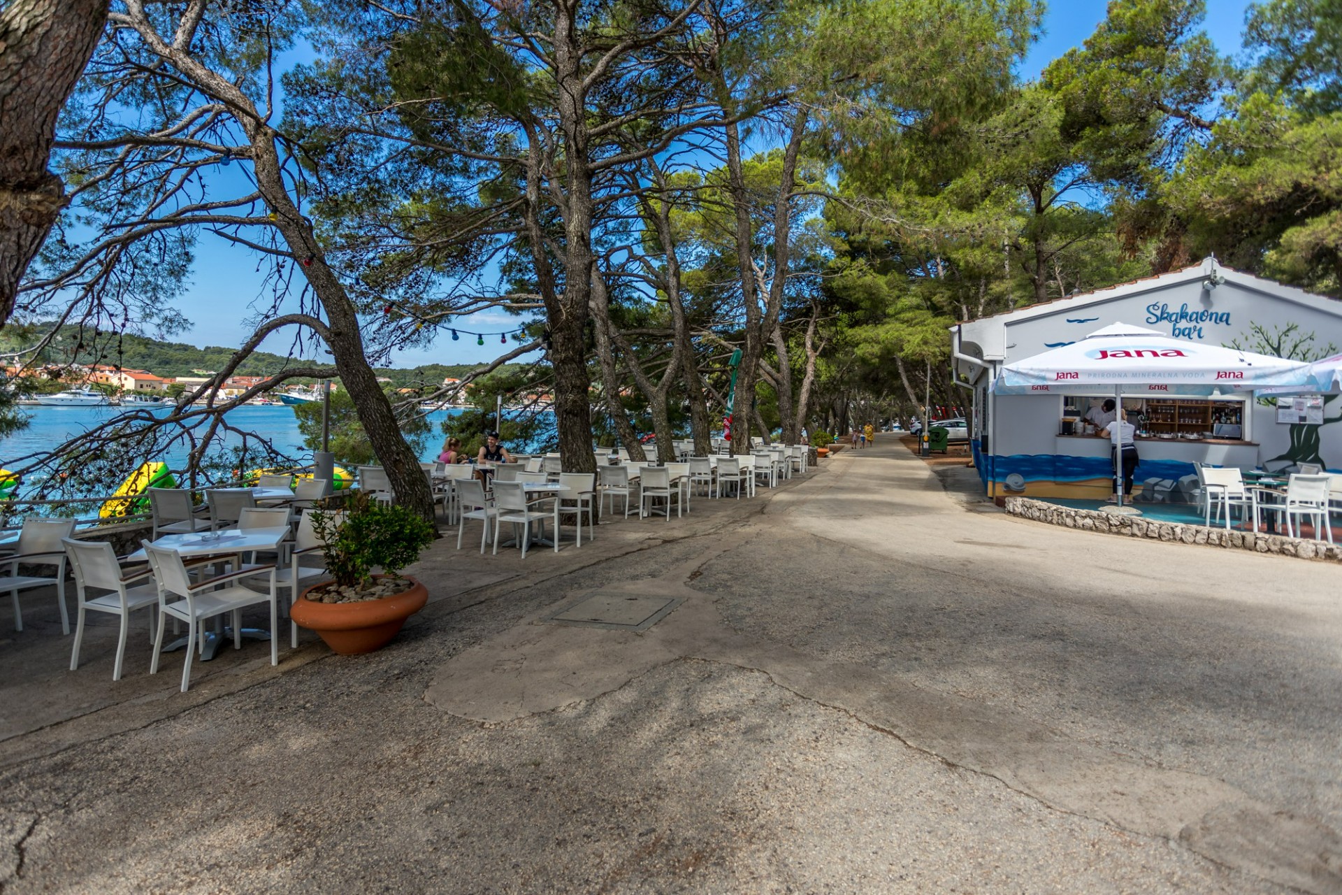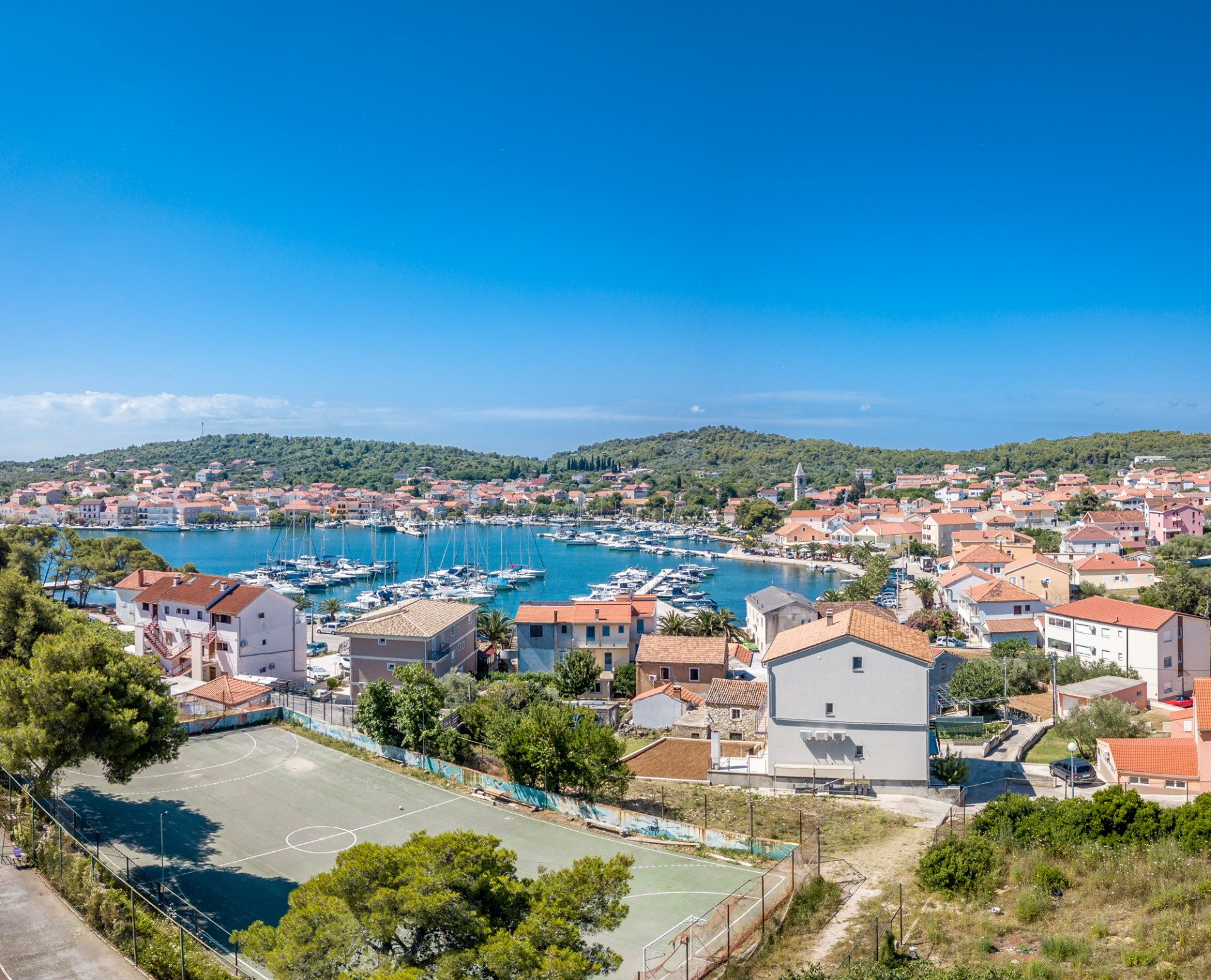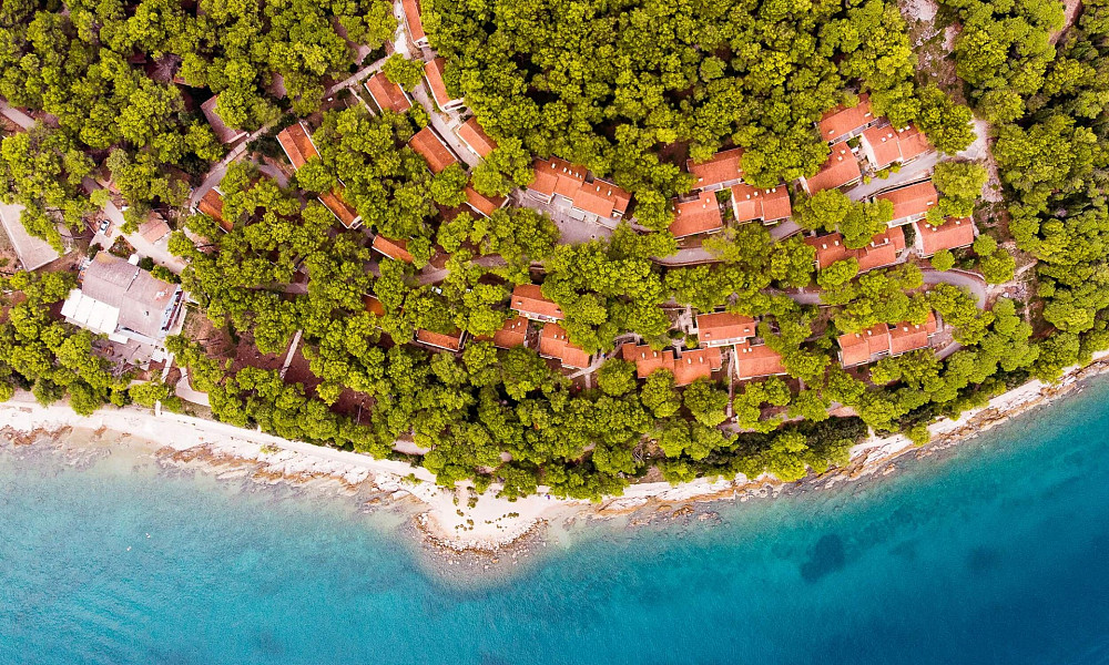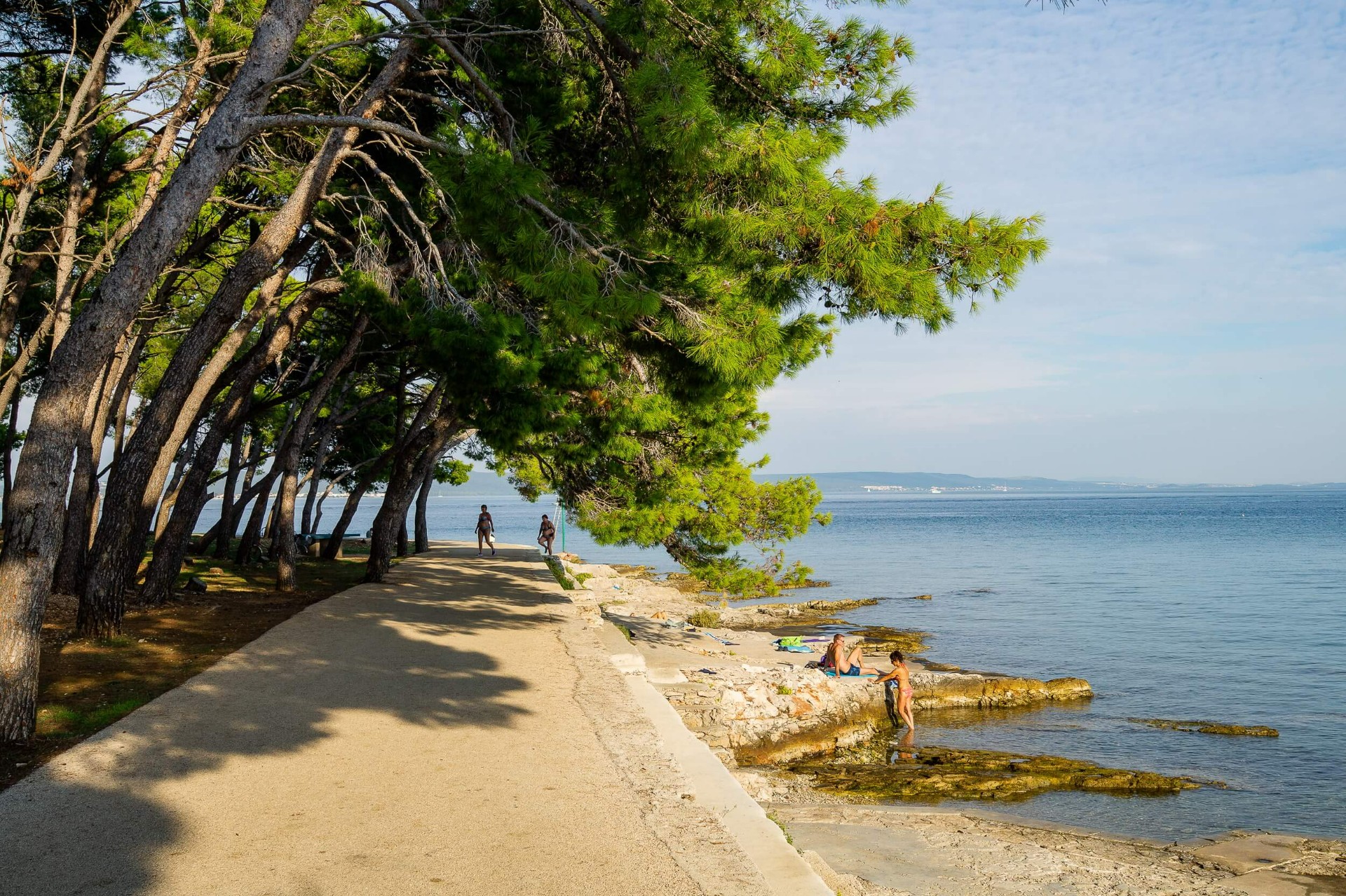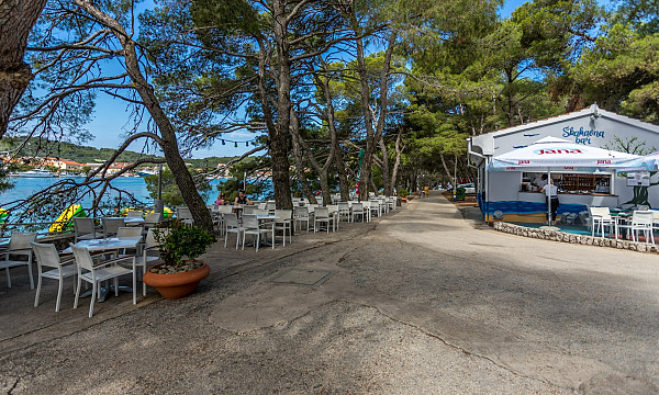 v borovem gozdičku, na manjšem polotoku, pribl. 700 m od središča Kukljice.