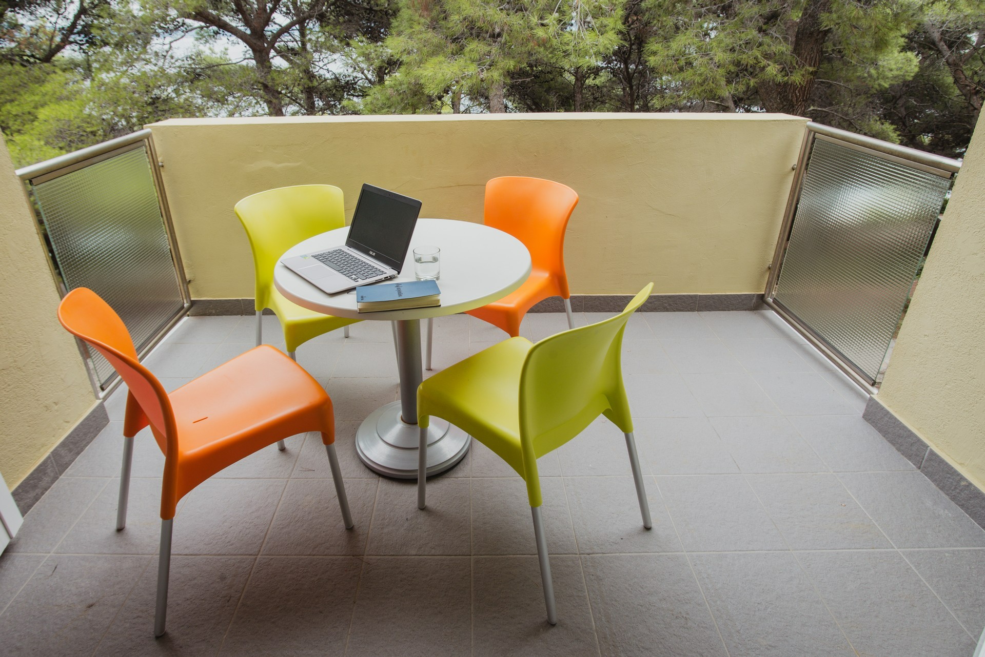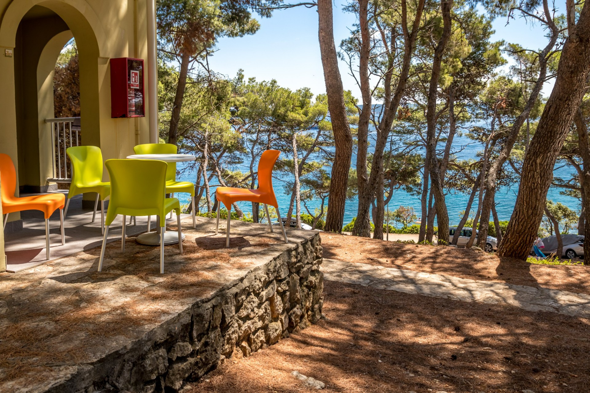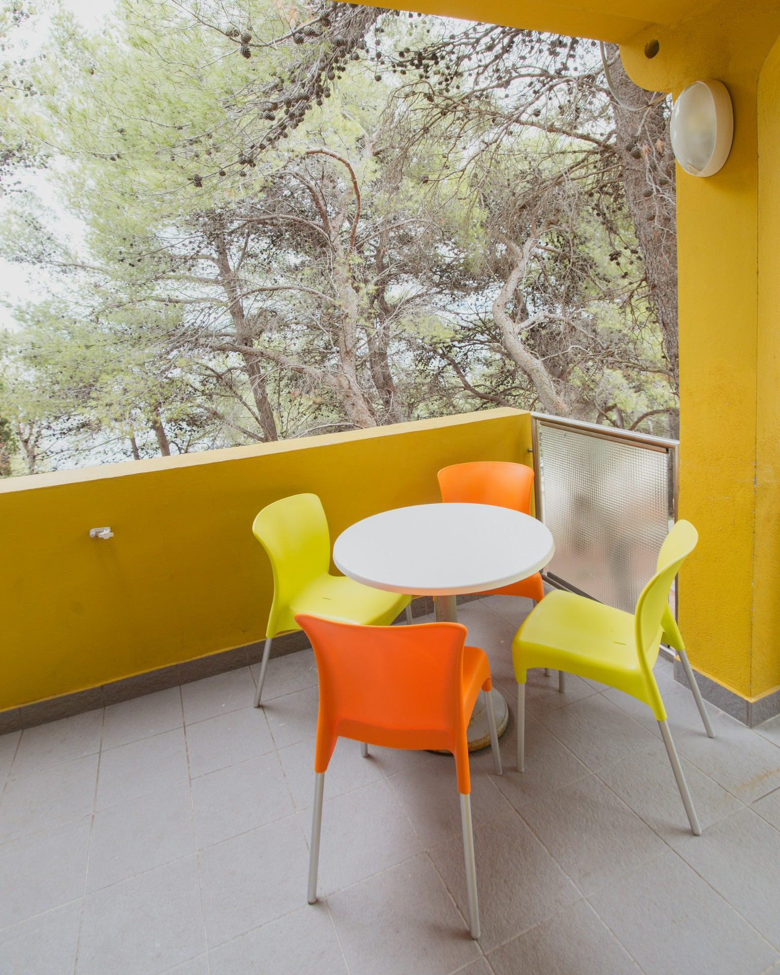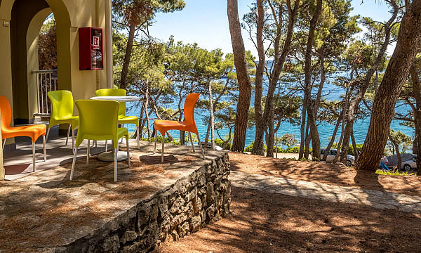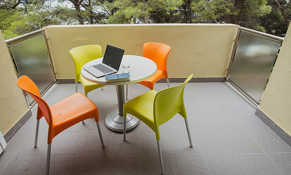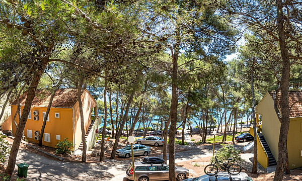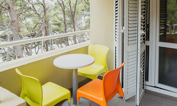 APP 1/2+2 TIP B – prenovljeni (pribl. 40 m2): spalnica (zakonska postelja), dnevni prostor z raztegljivim kavčem za dve osebi in kuhinjsko nišo, klima, kopalnica (prha, WC, sušilec za lase), SAT TV, sef, brezplačen WiFi, terasa ali balkon s sedežno garnituro. Namestitev največ 3 odrasli in 1 otrok do 12 let. Oddaljenost od morja: pribl. 150 m. Apartmaji so bili l. 2023 prenovljeni.