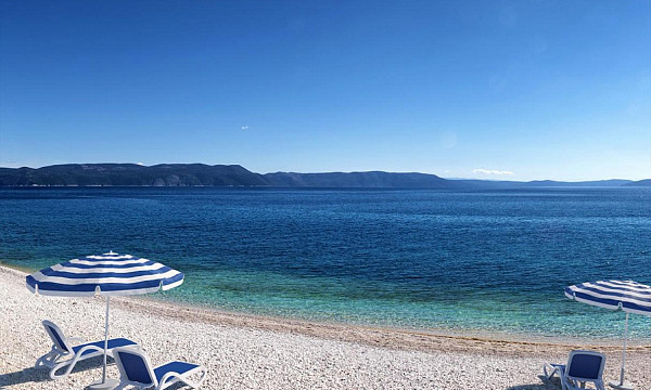 prodnato-peščena plaža je oddaljena pribl. 150 m. Možnost najema ležalnikov in sončnikov.