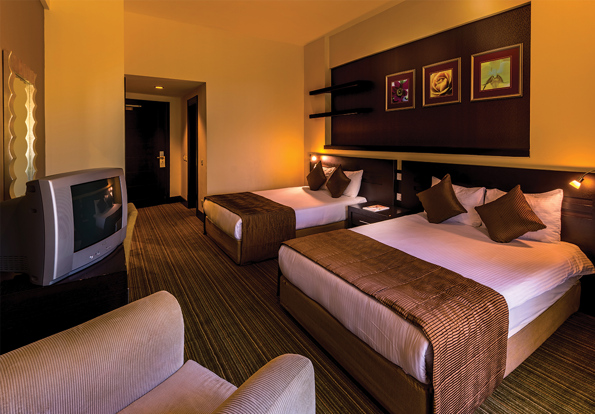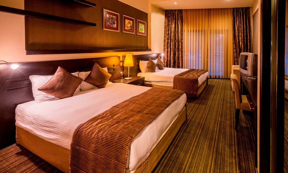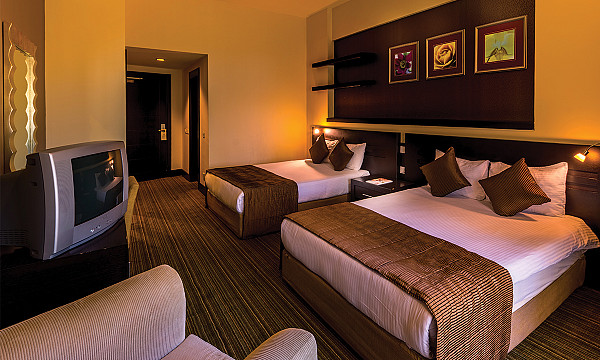 Standardne sobe: centralno vodena klimatska naprava, kopalnica (prha/kad, WC, sušilec za lase), telefon, SAT TV, brezžični internet, mini bar (doplačilo), sef (doplačilo), balkon. Možnost dodatnega ležišča za eno odraslo osebo ali dve za otroka (soba bo utesnjena).
