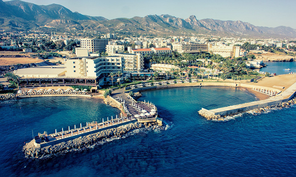 ob manjši, peščeno-prodnati plaži, pribl. 1,5 km od središča Kirenije (brezplačni vlakec, predvidoma 3x na dan razen nedelje), 40 km od letališča Ercan, 900 m od avtobusne postaje, v bližini trgovinic, barov in restavracij.